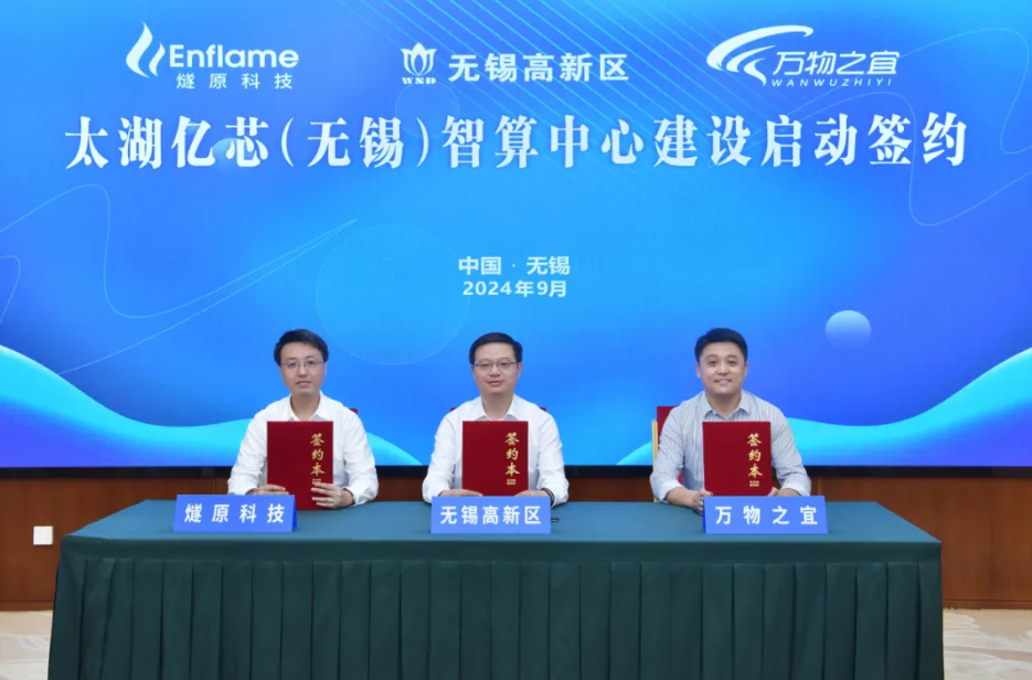 9月27日,燧原科技创始人兼COO张亚林与万物之宜董事长王彬昌出席太湖亿芯(无锡)智算中心建设启动签约仪式,无锡高新区党工委书记、新吴区委书记崔荣国与张亚林一行交流会谈,区领导顾国栋,无锡联通党委书记、总经理夷淑华参加活动。