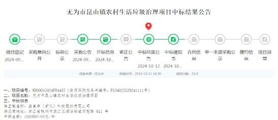 近日,无为市昆山镇人民政府对无为市昆山镇农村生活垃圾治理项目进行公开招标。蔚复来(浙江)科技股份有限公司凭借敏锐的政策解读能力、先进的核心产品、持续的技术创新能力、负责专业的运营管理团队、科学智能的物联管控平台以及前沿的“AI+数字化”解决方案,以综合分数排名第一的成绩成功中标无为市昆山镇农村生活垃圾治理项目。