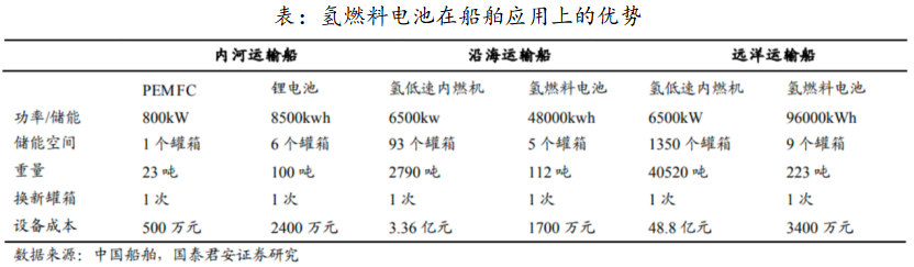 PEMFC船舶适用于内河/近海中小型船舶,SOFC 适用于内河/近海/远洋等中大型船舶。在船用发电系统领域,受限于现有装置储氢密度,PEMFC技术适用于以纯氢为燃料、零排放、中短航程、频繁启停运行的内河/近海中小型船舶,作为主动力。SOFC技术则因兼顾氢、氨、LNG、LPG等多种燃料、发电效率更高,适用于清洁排放、远航程、需要热电联供的内河/近海/远洋等中大型船舶,作为辅助动力或主动力,燃料综合利用率达80%~95%。国内首艘氢燃料电池动力船舶“三峡氢舟1号”已完成下水和系泊试验,额定输出功率500kW,最高航速可达到28公里/小时,续航里程最高可达200 公里,氢舟首航有望带动我国氢能船舶产业发展。