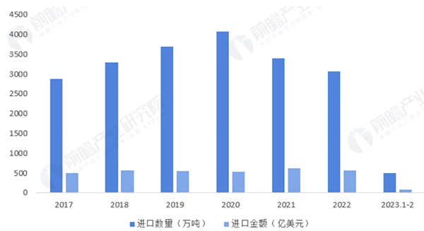 目前,我国化工新材料自给率不高,合成树脂行业高端产品自给率较低,主要依赖进口。从合成树脂进口规模来看,2017-2022年,中国合成树脂进口量呈先增加后下降态势,2020年合成树脂进口量最高,达4063万吨。2021年开始,中国合成树脂进口量逐年下降,主要系 “十四五” 以来,我国积极鼓励行业创新发展,支持企业加大研发投入,逐步攻克高端产品,加之受疫情影响国内需求下降。2022年,我国合成树脂进口量为3058万吨,进口额为561.54亿美元; 2023年1-2月,合成树脂进口量为481万吨。